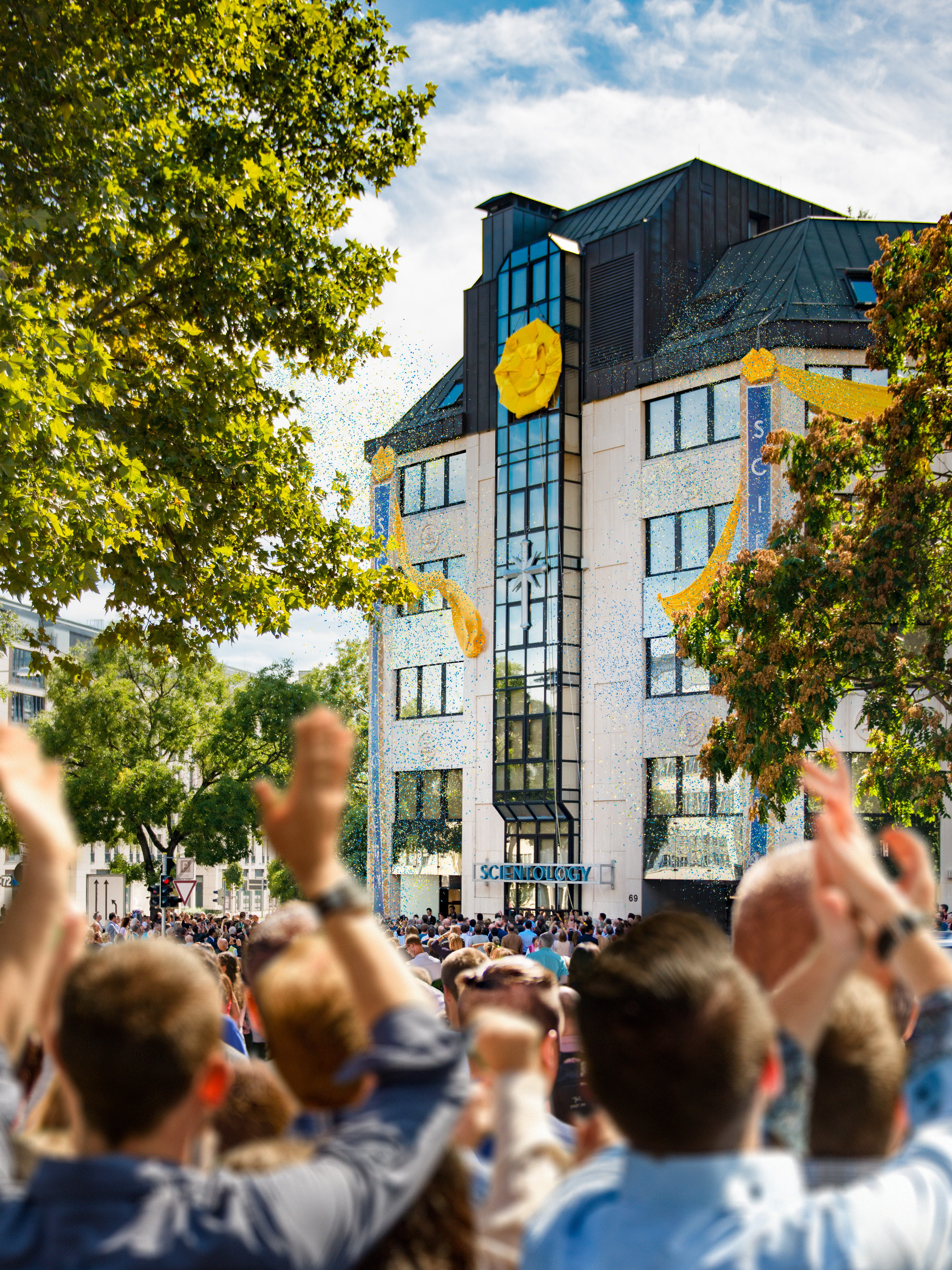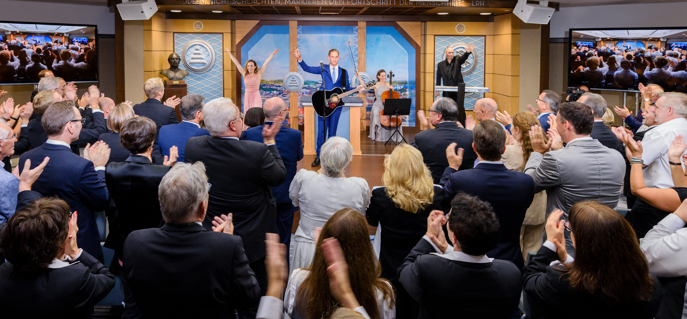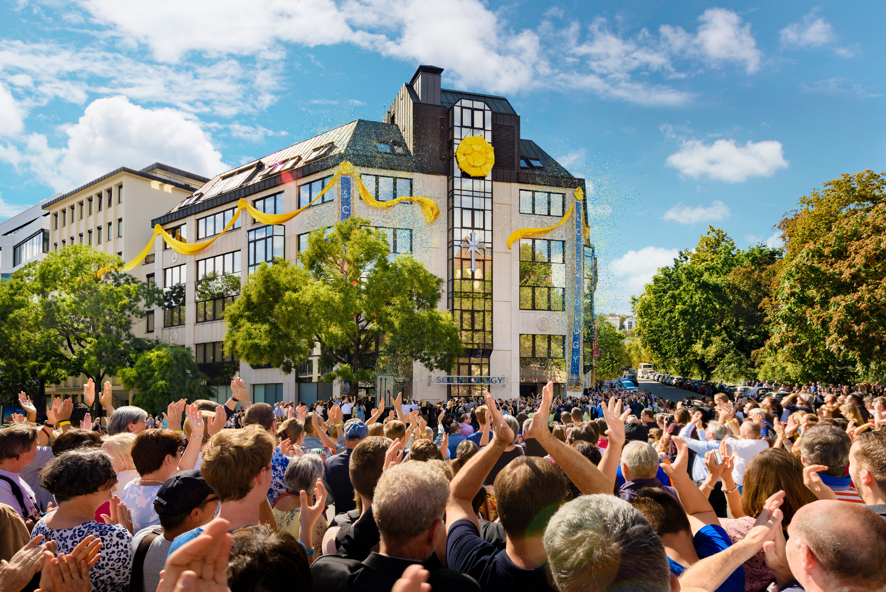 Alla luce di questo momento storico, David Miscavige, leader ecclesiastico della religione di Scientology, ha detto: “Oggi inauguriamo la più grandiosa Chiesa di Scientology della Germania e una residenza che si addice a questo punto di riferimento della nazione. Rappresenta il fatto che niente è più grande della ricerca della saggezza... e niente è più duraturo della dignità umana e della libertà. Sotto quell’aspetto, questa chiesa incarna le esatte Mete di Scientology: ‘Una civiltà senza pazzia, senza criminali e senza guerre, in cui le persone capaci possano prosperare e gli esseri onesti possano avere dei diritti, in cui l’Uomo sia libero di innalzarsi a più elevate altezze’... perciò, apriamo le nostre porte”.